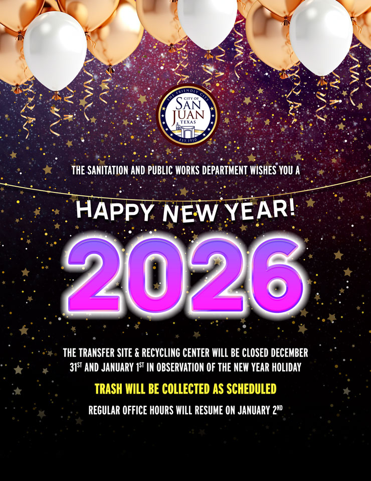 Sanitation Department New Year Holiday 2025-12-29T22:29:30+00:00December 29, 2025| The Sanitation Department will be closed on December 31st and January 1st for the New Year Holiday! Trash will be collected as scheduled!