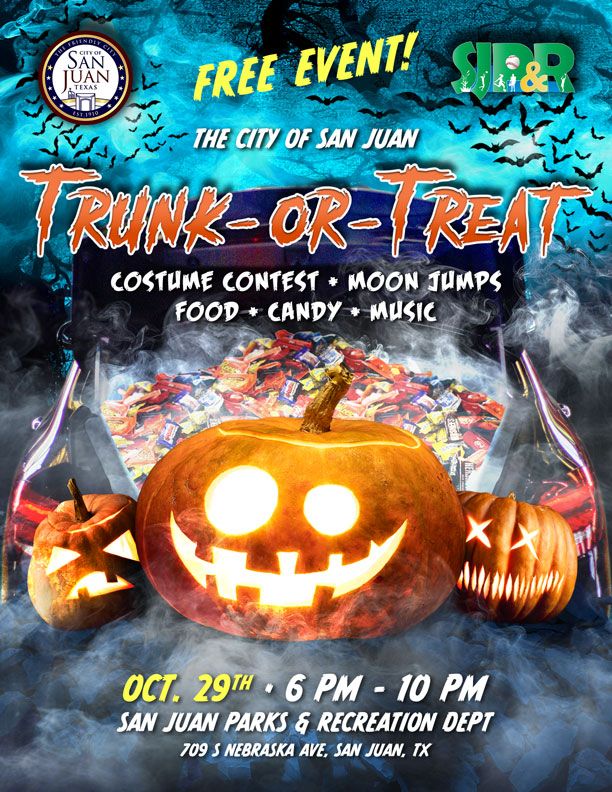 We’re happy to announce that our Trunk-Or-Treat is happening on Wednesday, October 29th, at the San Juan Parks & Recreation Department!